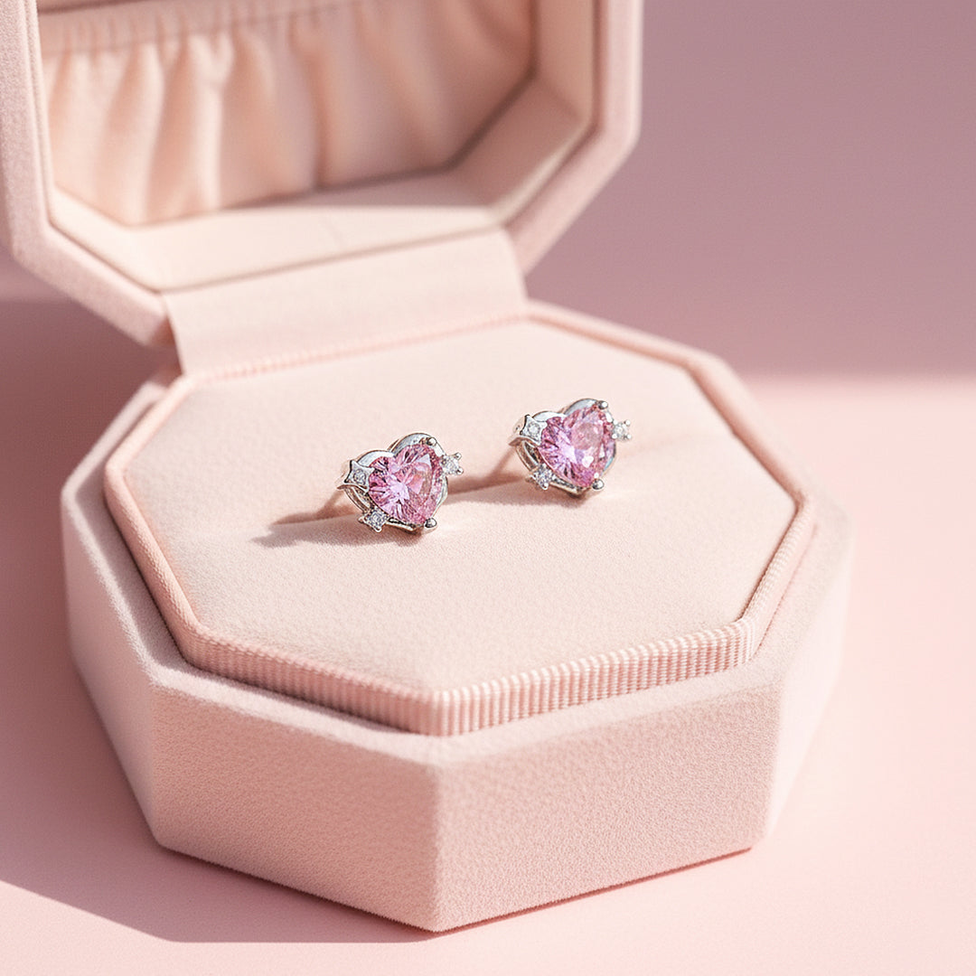 The Luxe3660 – Celeste Heart earrings are a radiant expression of elegance and romance. Designed with a captivating heart-shaped centre stone, available in soft blush pink or luminous sky blue, each piece sparkles with breathtaking brilliance. The expertly faceted AAAAA top-grade cubic zirconia captures and reflects light beautifully, creating a dazzling play of fire and shine with every movement. Delicate accent stones frame the heart silhouette, enhancing its sparkle while adding a refined touch of luxury and sophistication.